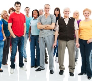Portrait of a large group of a Mixed Age people smiling and standing together.